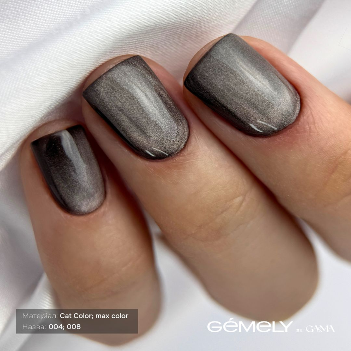 • Спосіб використання: Підготуйте нігтьову пластину та виконайте вирівнювання базою або укріплення гелем — з урахуванням обраної техніки. Зніміть липкий шар. Нанесіть шар Cat Color та створіть блік за допомогою магніту GÉMELY. Просушіть 60 секунд на повній потужності. За потреби додайте другий тонкий шар. Просушіть 60 секунд. Нанесіть топ – просушіть. Час просушування: у лампі LED 48ВТ – 60 секунд.